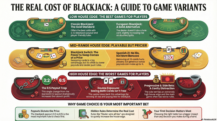 This article ranks common blackjack variants by house edge, explains what makes each one cheaper or more costly, and shows players how to recognize which games are worth sitting down at — and which are not.