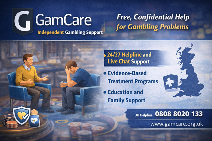 GamCare is a UK-based charity established to help people understand, manage, and recover from gambling harm. It operates independently from gambling operators, casinos, and affiliate websites.