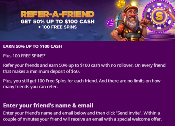 Super Slots “Refer-a-Friend” Promo – Get 50% Cash + 100 Free Spins!